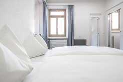 Doppelzimmer Deluxe mit Badezimmer. Die Bettengrösse beträgt zwei Betten mit den Massen 90x200cm.