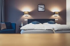 - Unterschiedliche Zimmerkategorien von gemütlich bis modern mit innovativer Kombination aus Beton, Glas und Holz