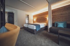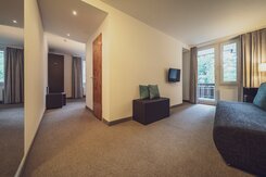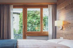 Each of the 98 rooms is equipped with a bathroom with shower and in some cases bathtub, hairdryer, flat-screen TV, safe, telephone and radio. Because of the hotel's central location, you won't need your car for the entire holiday. The hotel's own shuttle bus takes you directly to the Jakobshorn valley station in winter. The bus stop of the local bus, free of charge with the Davos Klosters guest card, is only a few minutes' walk away.