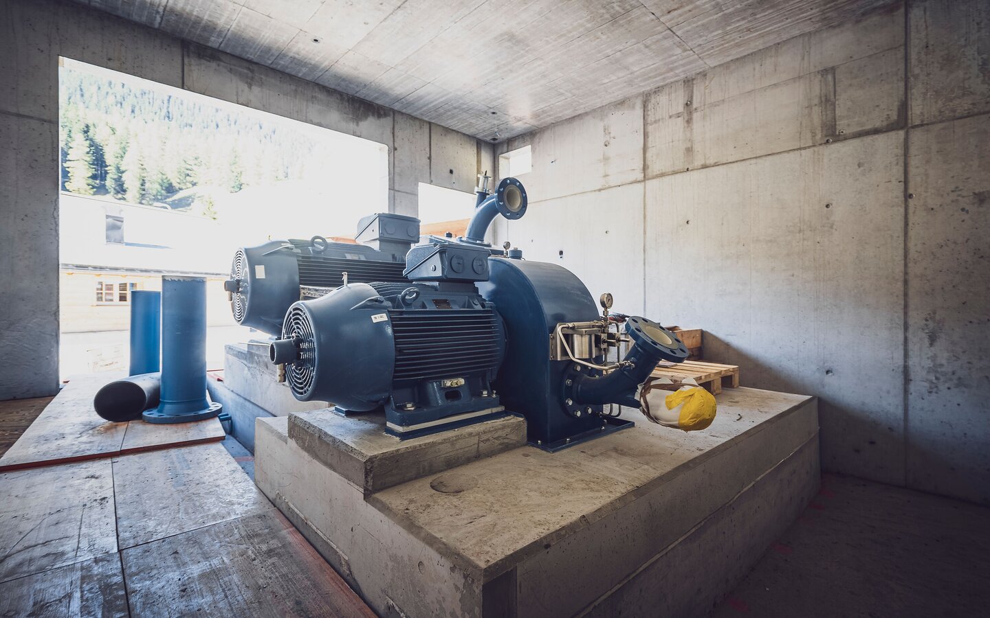 The turbine house at the valley station in Davos Glaris is the centrepiece of the Rinerhorn hydropower plant. Together with the largely existing hydraulic engineering infrastructure, it forms the central facility for energy generation. The turbine house will also serve as a visitor and information centre in future. A planned educational trail will allow visitors to experience the creation and utilisation of hydropower.